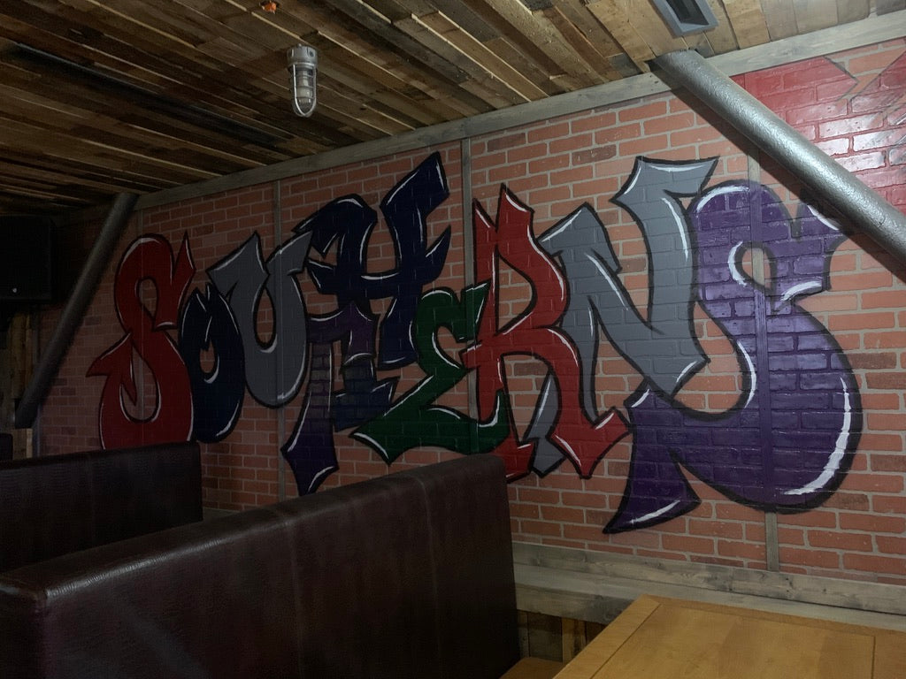 Completed in 2020, this 60 square foot mural has been a stunning addition to Southern's Green Room.